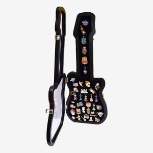 Guitar Shaped Pin Display Case Inspired by the iconic guitar shape, this special shadow box pin case is the perfect display for your most beloved Hard Rock pins. Deep foam allows you to position your pins to suite your taste and three wall mount openings on the back allow for easy display. Online Only. Pins…