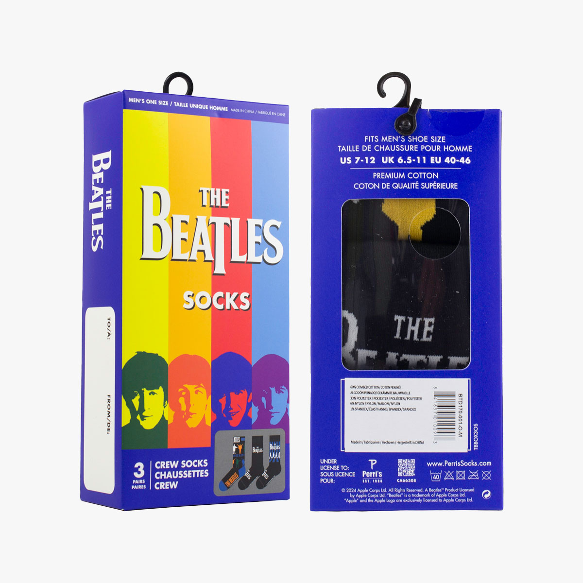 Step into style and celebrate the legendary Beatles with this 3-pair sock gift box. Featuring bold designs inspired by the band whose music defined a generation, this set is perfect for fans who want to wear a piece of music history. Available now at Hard Rock’s Rock Shop