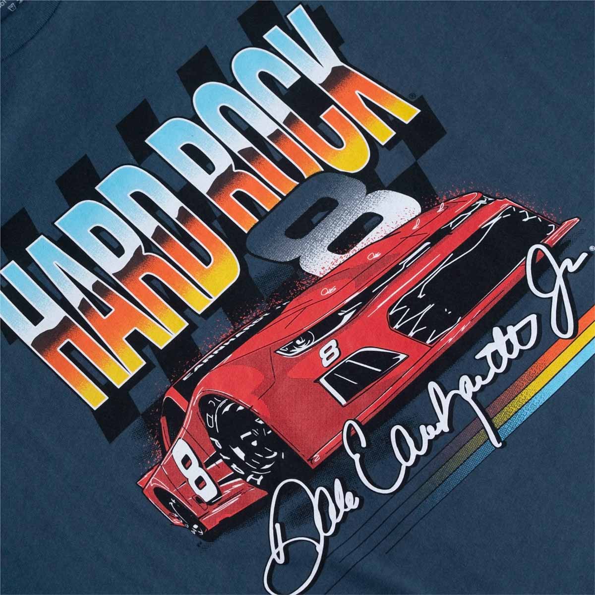Step up your game with the Dale Earnhardt Jr. Chrome Tee in Indigo – a legendary tribute to one of racing’s greatest icons. This tee captures the grit and determination of the track with a striking graphic featuring Dale Jr.’s race car, his unmistakable signature, and the Hard Rock logo. Made from 100% combed ring-spun cotton, this tee is all about comfort and durability. Pair it with your favorite jeans or shorts and hit the scene with unstoppable confidence.