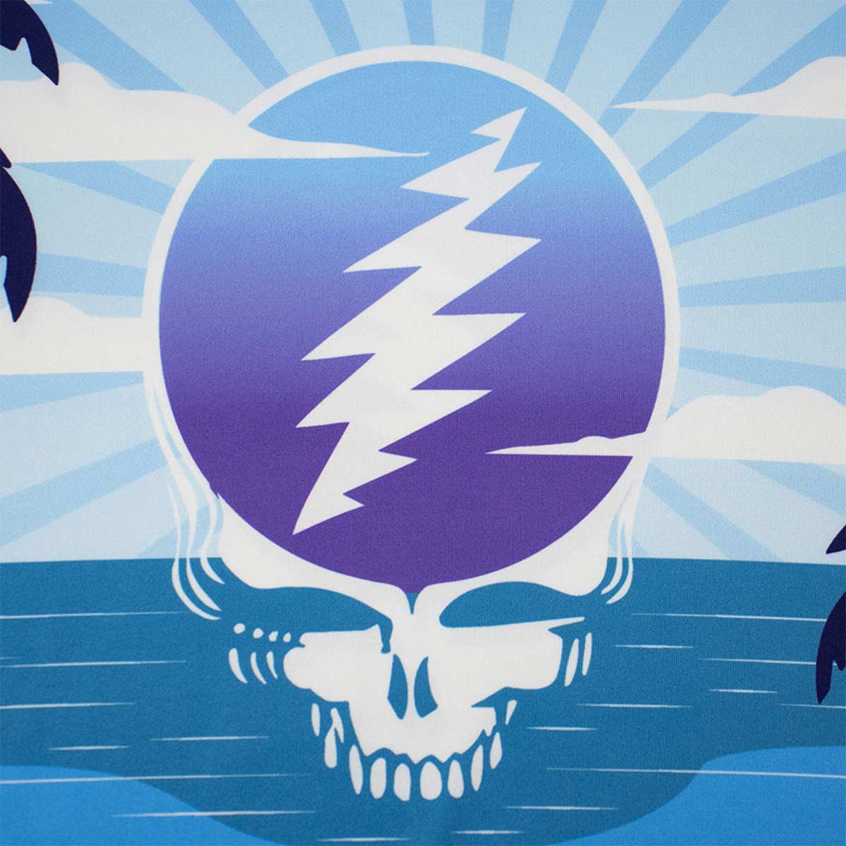 Grateful Dead Rising Sun UPF50 Hoodie in Tie-Dye Purple The Grateful Dead UPF 50 Hoodie Rising Sun Stealie Blue is a lightweight hoodie that is designed to offer both sun protection and comfort through its airy fabric. It is ideal for outdoor activities, ensuring a breathable experience while shielding you from the sun’s rays, and pays homage to the iconic Grateful Dead with its distinctive tie-dye pattern.