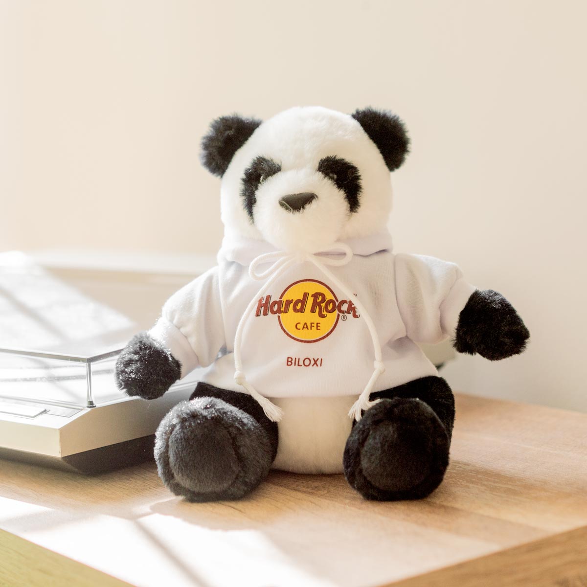 Kazoo The Panda Bear Plush Kazoo, our globe-trotting panda bear, is the perfect plush companion to cuddle up with. Sitting at 8" tall and decked out in a mini Hard Rock Classic Logo hoodie, this panda bear is the life of the plush party!