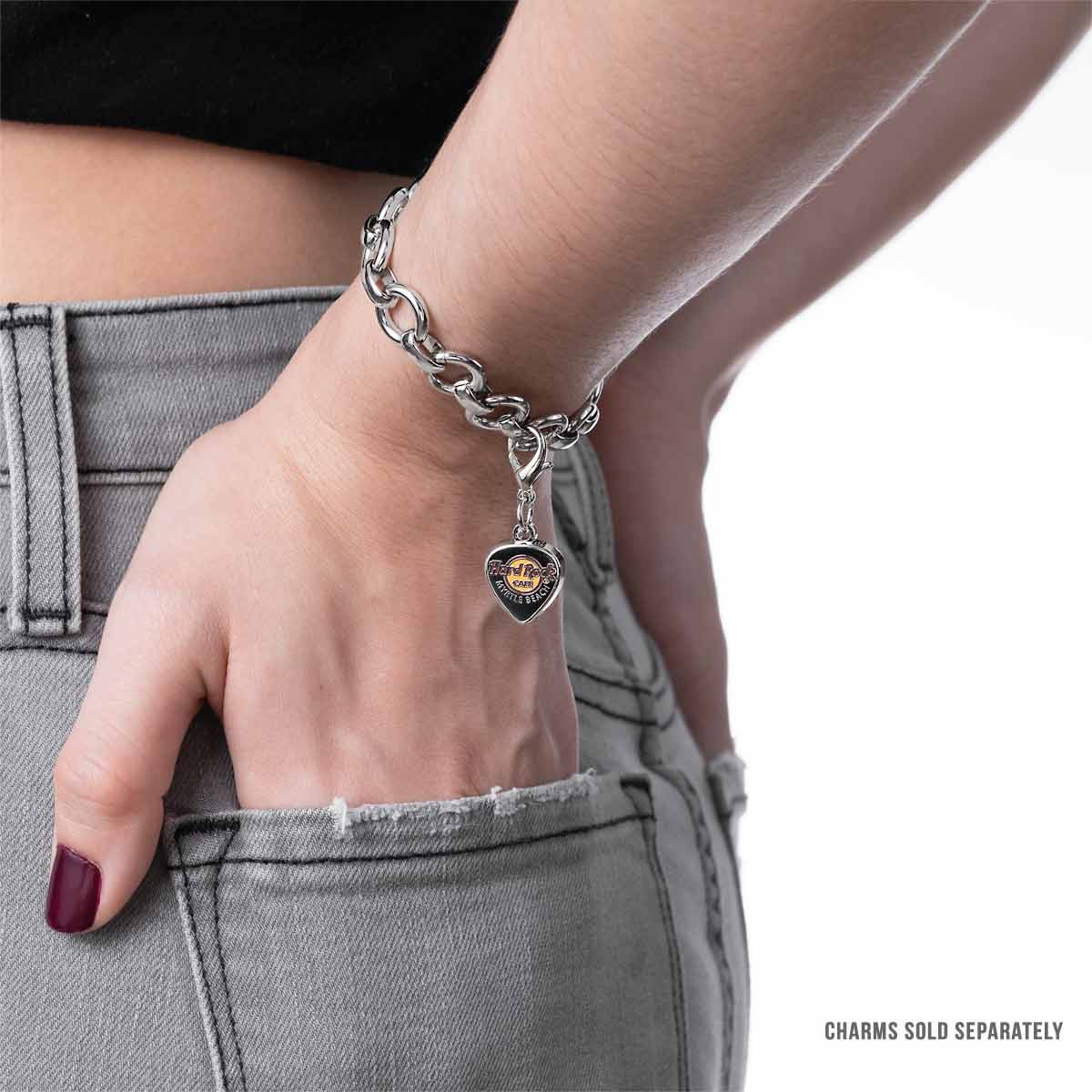 Oval Link Charm Bracelet Jazz up your jewelry box and collect every unforgettable Hard Rock moment with this simple silver starter bracelet. Easily add new charms to each oval link and commemorate your favorite destinations with a funky fashion piece that goes perfectly with everything in your closet.